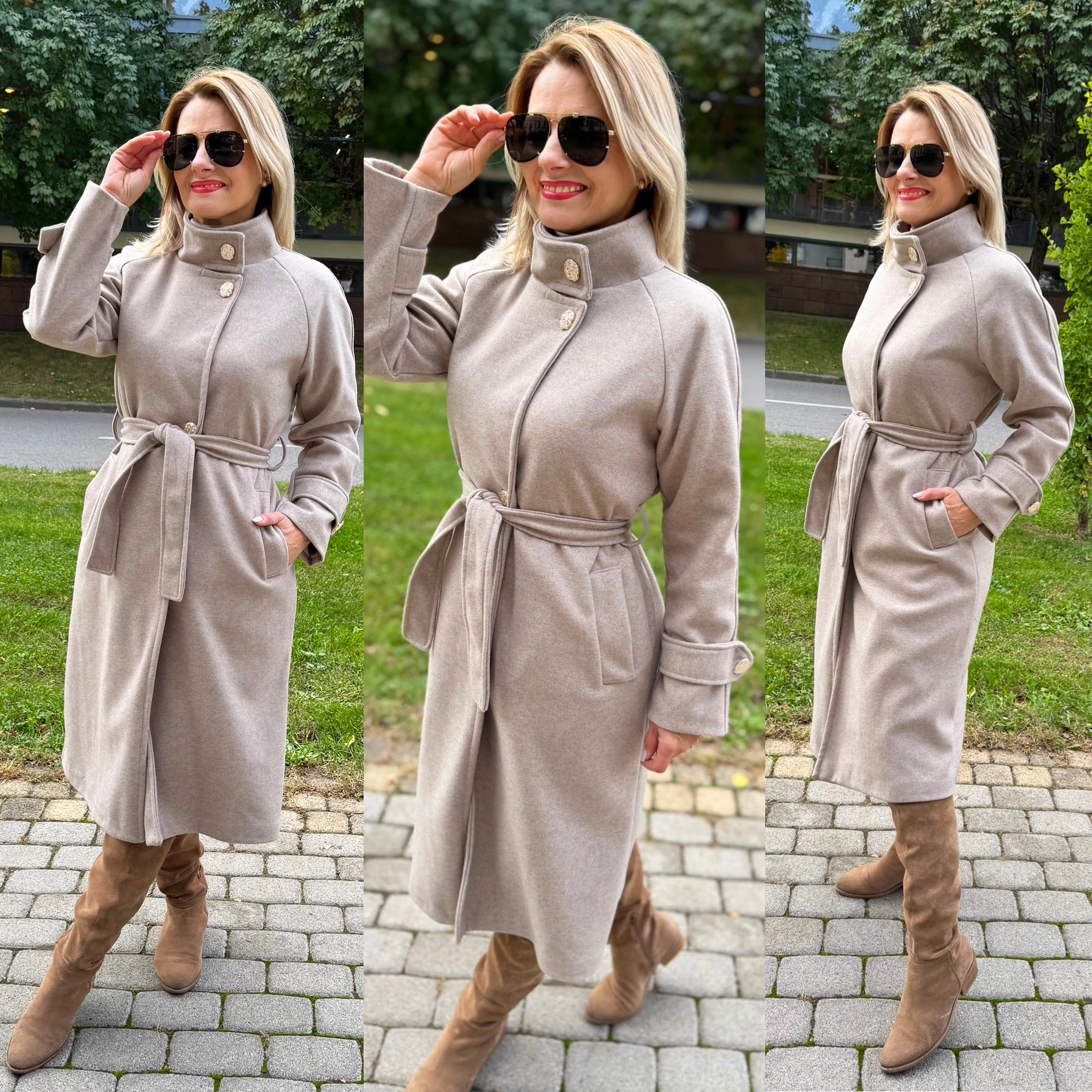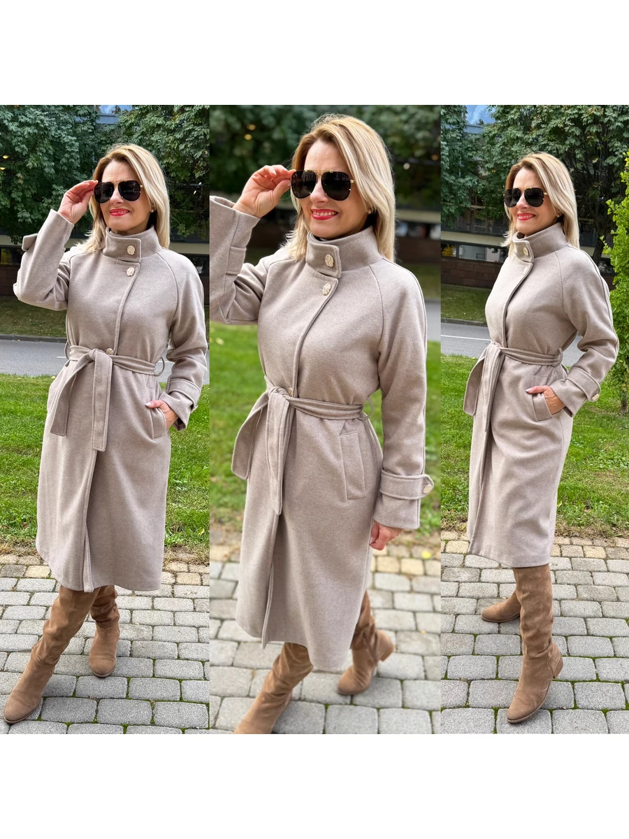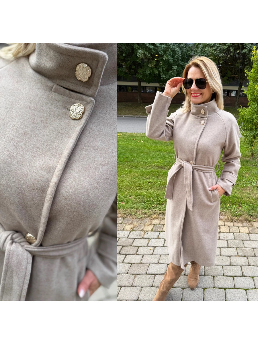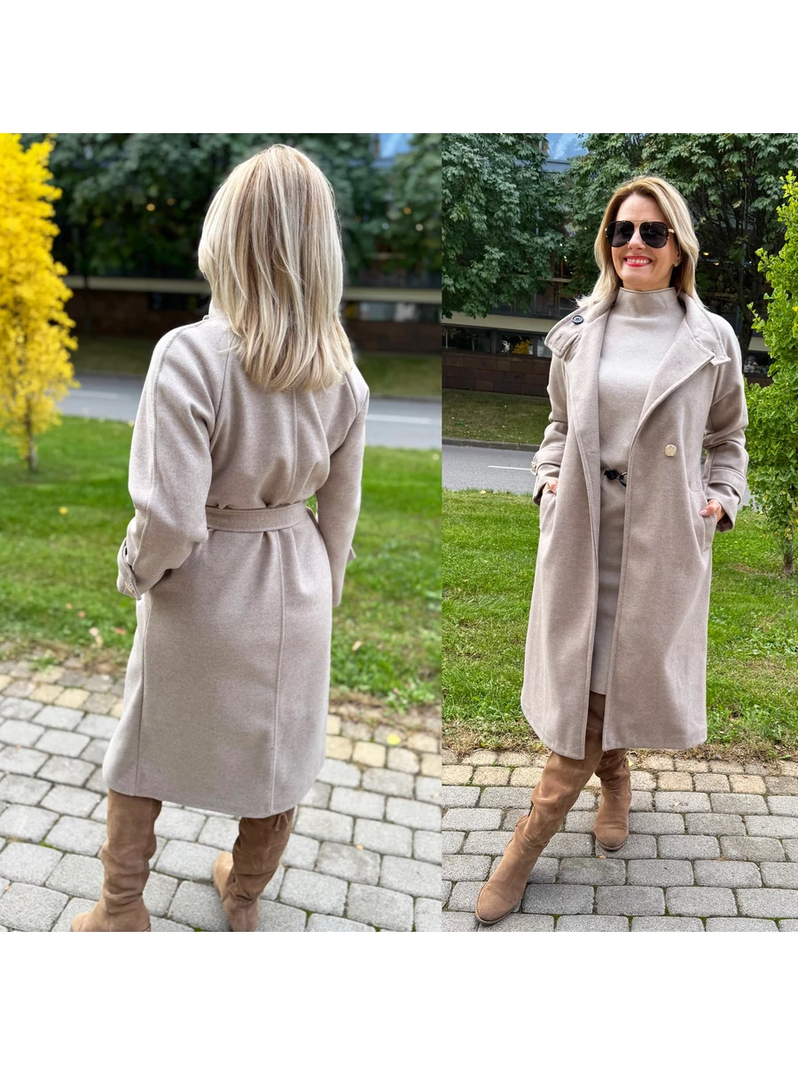 Beige dream – a selyemmel bélelt eleganciaEz a szövetkabát – visszafogottan elegáns, mégis minden részletében luxust sugároz. Zsebes, egyenes szabású kabát derekát az öv hangsúlyozza – így egyszerre lehetsz stílusos, magabiztos és kifinomult.