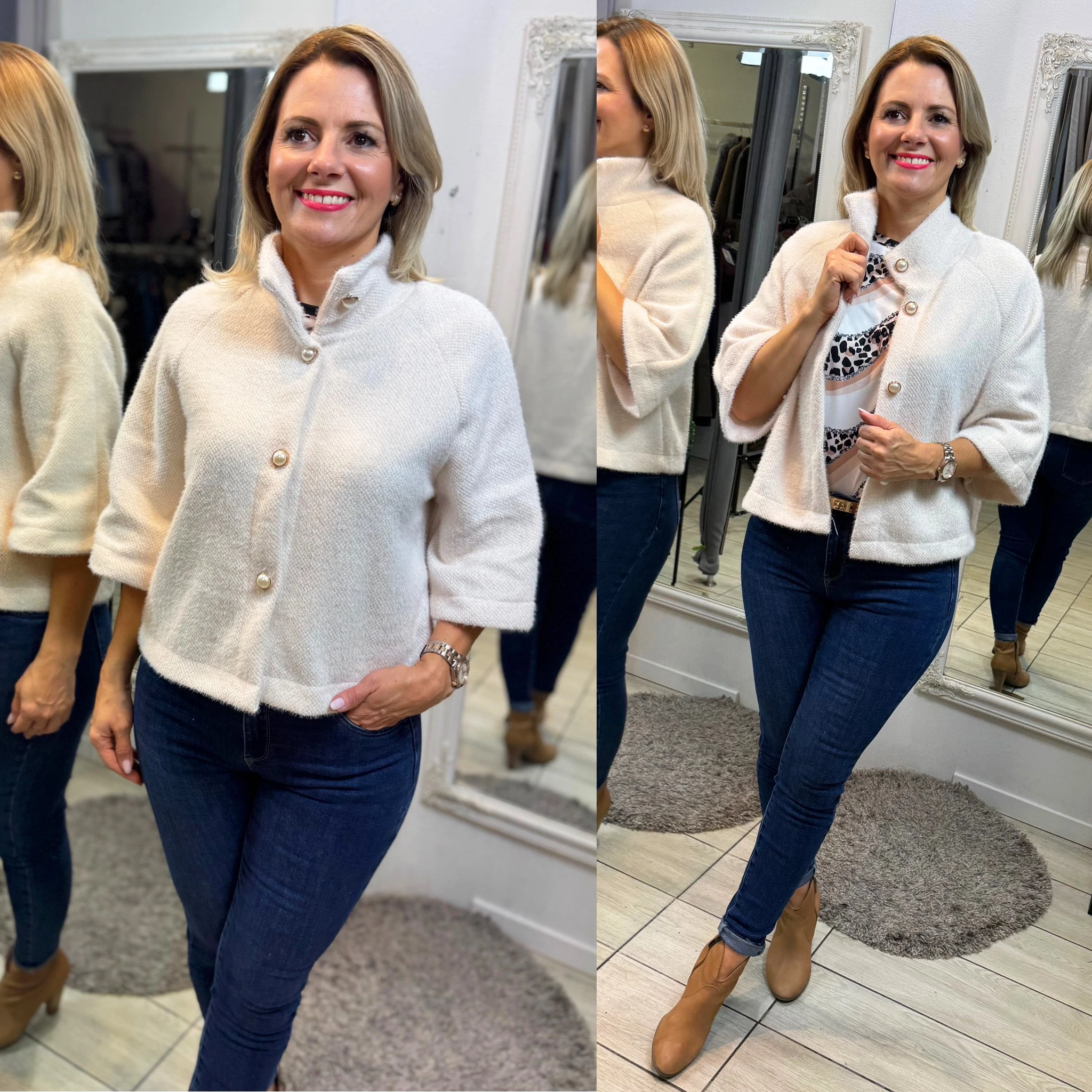 Whisper - pihe-puha kabátka Amikor beköszönt a hűvösebb idő, de még nem akarsz lemondani a nőies, sikkes megjelenésről — ez a 3/4 ujjú, elegáns kabátka lesz az új kedvenced! Viseld farmerrel a lezser elegancia jegyében, vagy egy ceruzaszoknyával, ha nőiesebb, irodai hatásra vágysz. A magasított gallér egy kis plusz stílust és meleget ad – pont annyit, amennyit egy őszi reggelen imádni fogsz. Több színben is elérhető, hogy minden hangulatodhoz és szettedhez megtaláld a tökéletes árnyalatot!