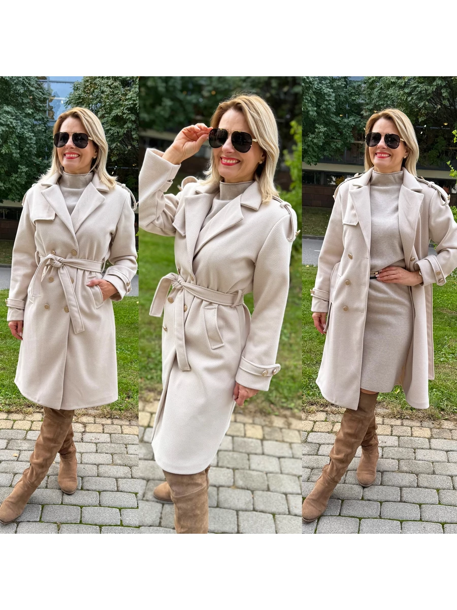 A bézs színű szövetkabát az őszi–téli szezon igazi must-have darabja! A derékrésznél övvel megkötős fazon kiemeli az alakot, miközben kényelmes mozgásteret biztosít. A puha tapintású szövetanyag és a precízen kidolgozott szabás garantálja, hogy minden szetted stílusos és kifinomult legyen.