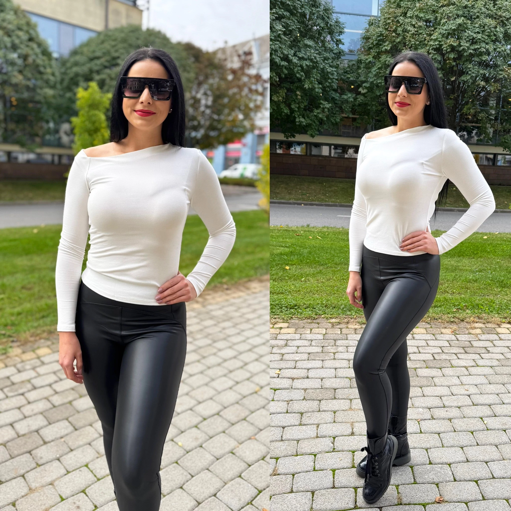 Aszimmetrikus nyakkivágás sejtelmesen hangsúlyozza a dekoltázst, miközben letisztult marad – pont annyira különleges, hogy észrevegyenek. A magas pamuttartalmú, rugalmas anyag kényelmes viseletet nyújt. 6 színben a webshopon: fehér, fekete, camel, világoskék, szürke, ekrü.